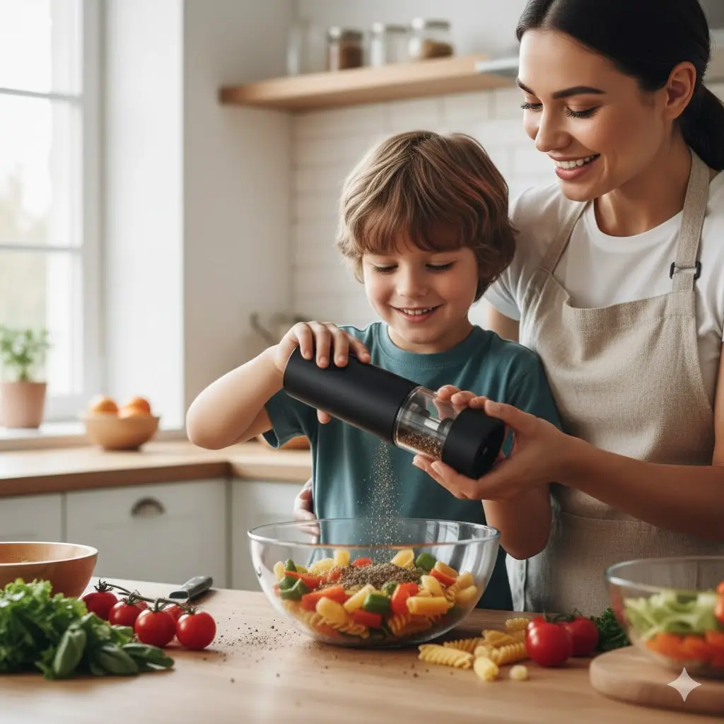 Manejo con una sola mano: El aliado perfecto para cocinar y condimentar al mismo tiempo.