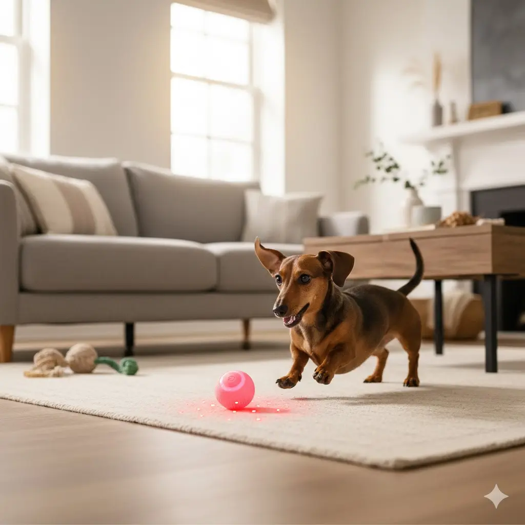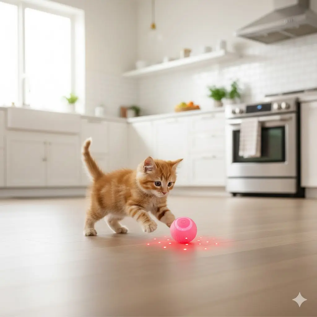 Emite luz LED y se mueve solo para que el gato lo persiga.